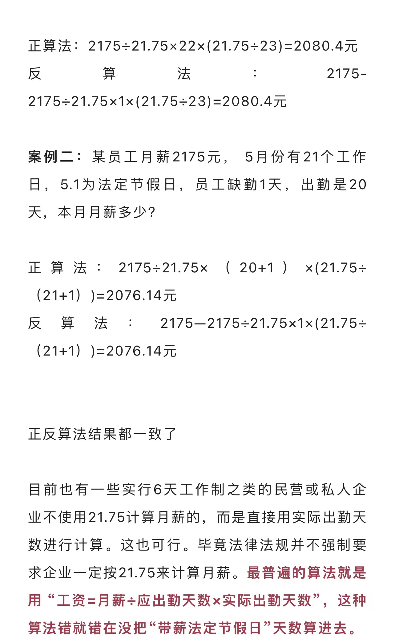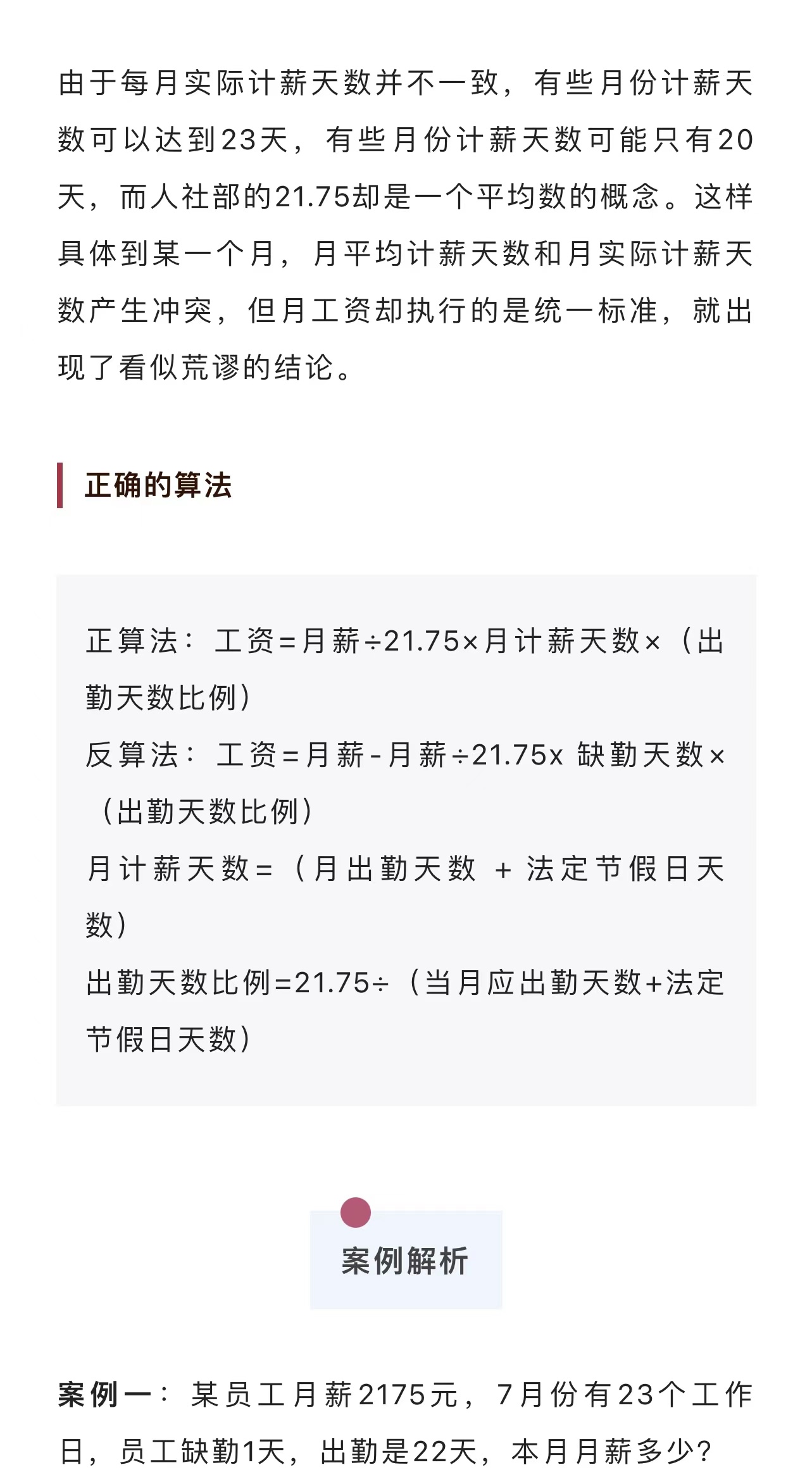 职工月工资怎么算,从21.75开始